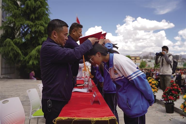 冠笄之禮,是中華民族重要的文化遺產(chǎn),更是長大成人的象征。活動中,同學們戴上成人禮帽,以成人的姿態(tài)、豪邁的語調(diào)向著鮮艷的五星紅旗莊嚴宣誓,向祖國、向社會、向未來作出了莊重的承諾。拉薩市第四高級中學副校長陸彭飛對這群充滿蓬勃朝氣和無限希望的學子們表達了衷心的祝愿,他希望同學們懷揣感恩之心,敢于拼搏、勇于超越,用奮斗給自己最美的青春交上一份滿意的答卷。