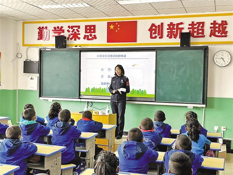 圖為日喀則邊境管理支隊(duì)帕里邊境派出所民警走進(jìn)學(xué)校宣講法律知識。記者 趙文慧 通訊員 白瑪倉覺 攝