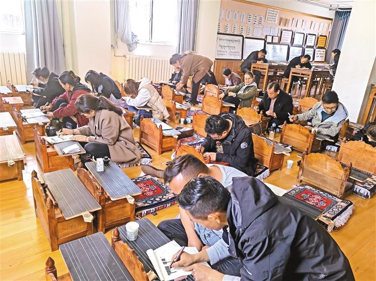 圖為娘熱小學(xué)組織開(kāi)展藏文黑板字培訓(xùn),提升教師專(zhuān)業(yè)素養(yǎng)。