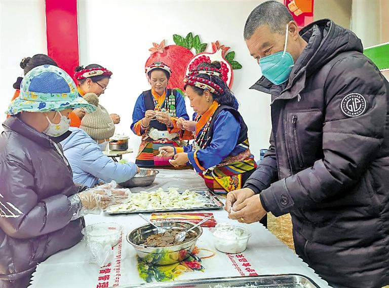 圖為日喀則市桑珠孜區(qū)吉培社區(qū)各族群眾在社區(qū)食堂包餃子、包湯圓。記者 陳林 攝