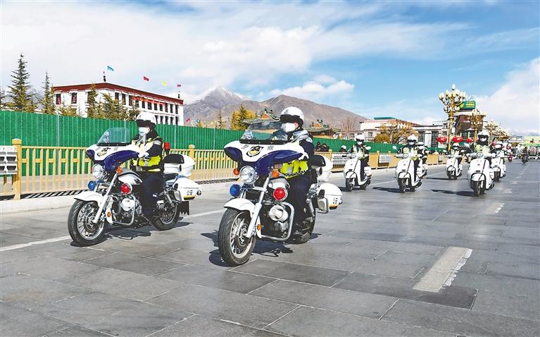 拉薩市公安局交警支隊(duì)城北大隊(duì)女子中隊(duì)交警颯爽英姿。記者 唐斌 攝