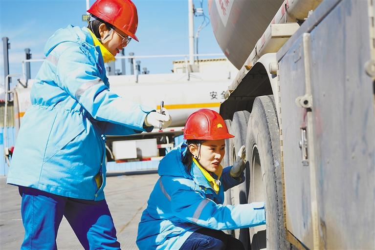 中國(guó)石油運(yùn)輸西藏分公司女員工在養(yǎng)護(hù)車輛。記者 次仁平措 攝