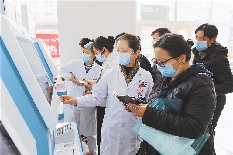 拉薩市人民醫(yī)院女醫(yī)務(wù)人員幫助患者家屬辦理業(yè)務(wù)。記者 丹增群培 攝