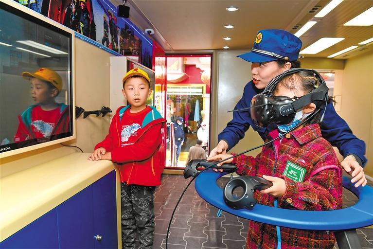 消防隊(duì)員借助VR模擬系統(tǒng),為孩子們講解防火防災(zāi)知識(shí)。記者 丹增群培 攝