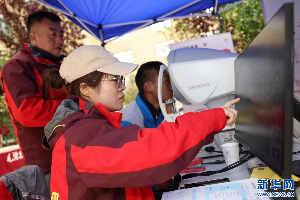 ??在西藏自治區(qū)那曲市色尼區(qū)第二中學(杭嘉中學),志愿者用綜合驗光儀為學生驗光(6月22日攝)。新華社發(fā)(趙穎碩 攝)