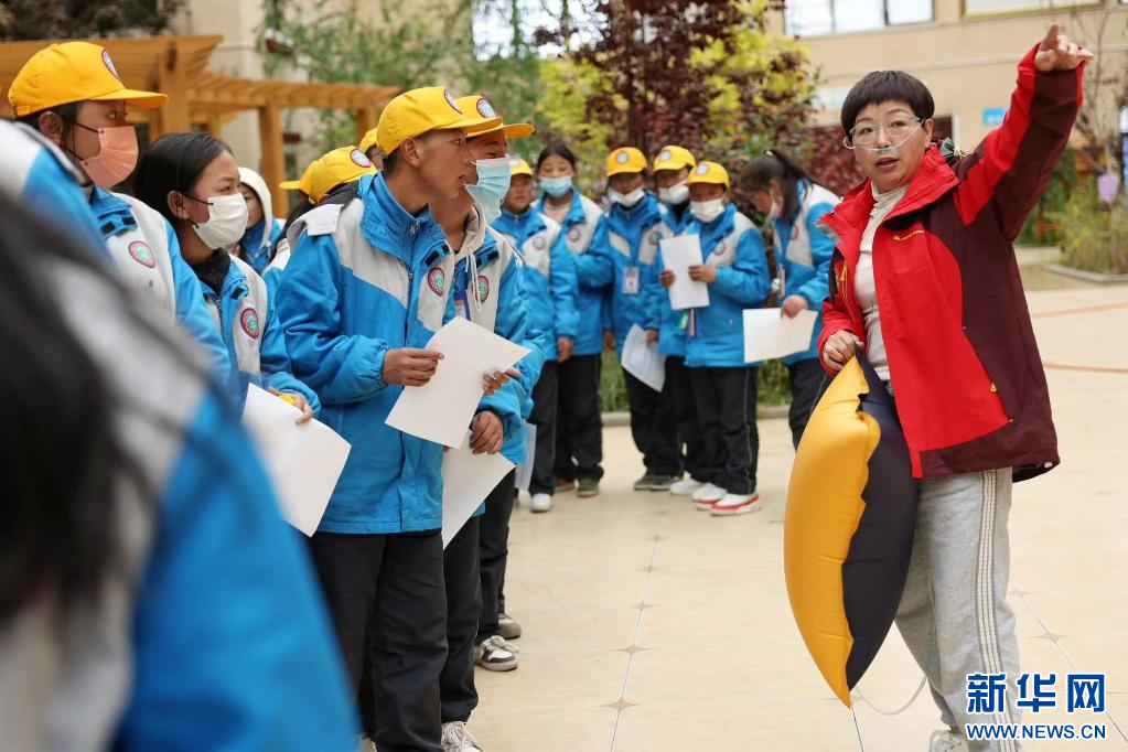 ??在西藏自治區(qū)那曲市色尼區(qū)第二中學(杭嘉中學),志愿者陳春玉正在引導學生排隊驗光(6月22日攝)。新華社發(fā)(趙穎碩 攝)