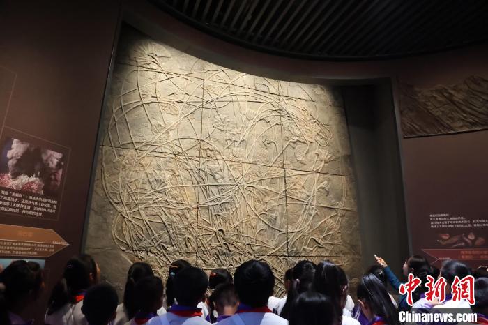圖為青海省自然資源博物館展出的生物化石。張?zhí)砀?攝