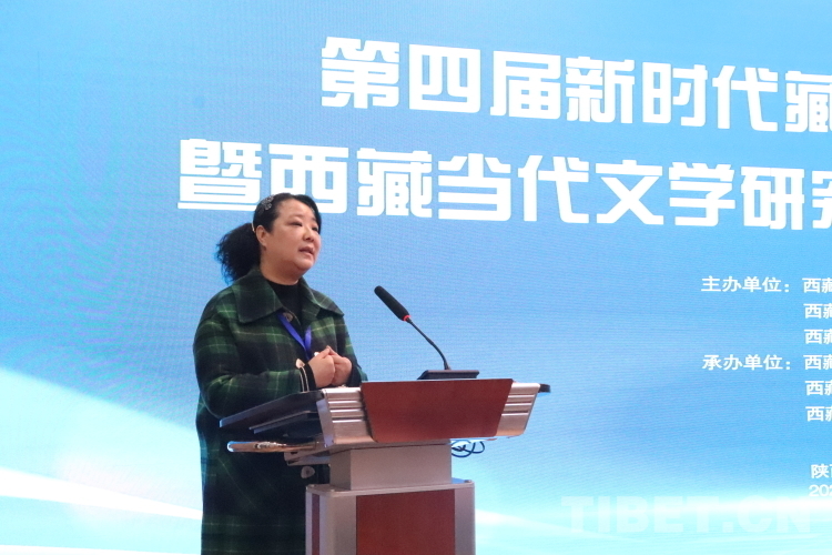 馬靜代表西藏民族大學(xué)致辭。她說,在習(xí)近平總書記致西藏民族大學(xué)建校60周年賀信精神的指引下,學(xué)校不斷探索新時(shí)代中國特色社會(huì)主義民族教育的新路徑,取得了一定的成績(jī)。由西藏民族大學(xué)和西藏自治區(qū)文聯(lián)發(fā)起的新時(shí)代藏族文學(xué)高端論壇連辦四屆,有力地推動(dòng)了西藏當(dāng)代文學(xué)和當(dāng)代藏族文學(xué)創(chuàng)作與研究的發(fā)展與繁榮,以文學(xué)和學(xué)術(shù)的方式進(jìn)一步鑄牢中華民族共同體意識(shí)。