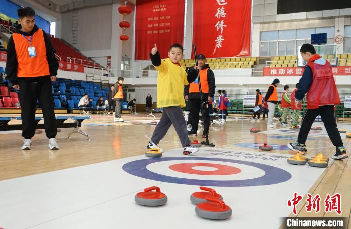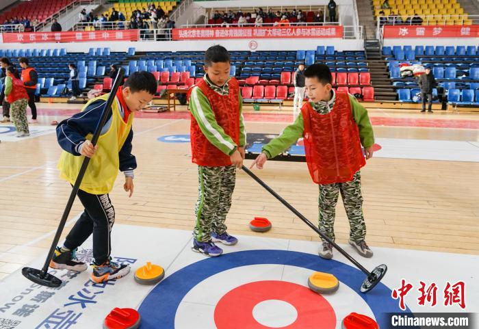 青海冰雪運(yùn)動(dòng)會(huì)賽場:冰壺少年顯身手