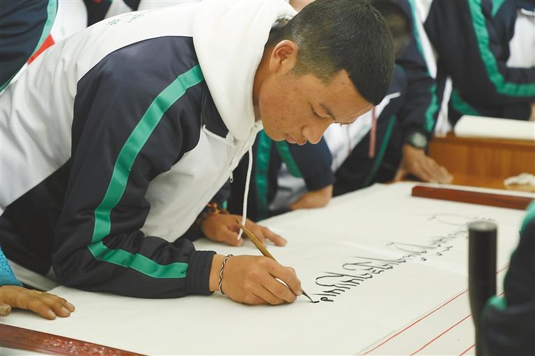 圖為拉薩北京實(shí)驗(yàn)中學(xué)舉行藏文書法比賽。