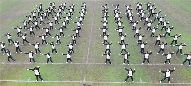 圖為學(xué)生們展演鍋莊舞課間操。(圖片均由拉薩北京實(shí)驗(yàn)中學(xué)校園電視臺(tái)提供)
