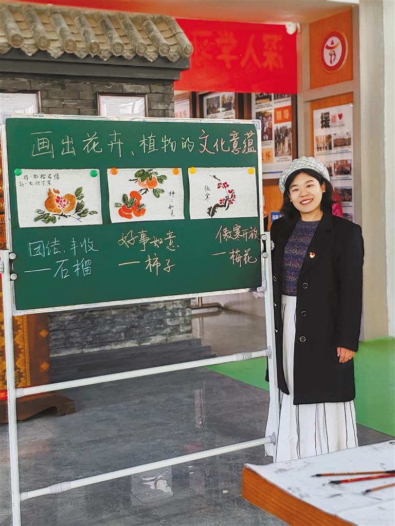 圖為馬瀟雅老師在國(guó)畫展示課上。