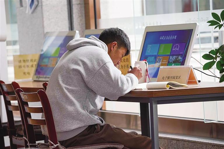 在西藏自治區(qū)圖書(shū)館閱讀的讀者。記者 阿旺尼瑪 攝
