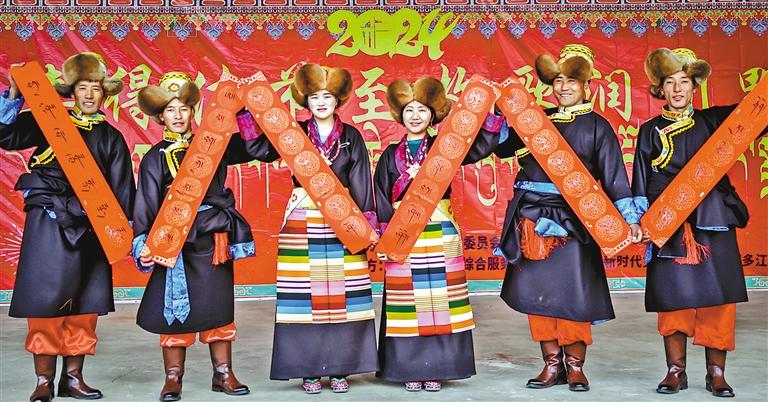 日前,西藏山南市曲松縣邱多江鄉(xiāng)組織300多名干部群眾在瑪如村舉辦了以“喜得佳節(jié)至 牧歌潤(rùn)川野”為主題的“村晚”文藝匯演活動(dòng)。當(dāng)?shù)啬撩?、返鄉(xiāng)大學(xué)生用17個(gè)精彩的舞蹈、歌曲、朗誦等節(jié)目,謳歌新時(shí)代新生活,展現(xiàn)基層群眾積極樂(lè)觀、昂揚(yáng)向上的精神風(fēng)貌。