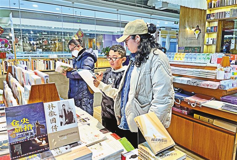圖為寒假期間,家長(zhǎng)帶著孩子來(lái)到拉薩某書店選購(gòu)書籍。記者 旦增蘭澤 攝