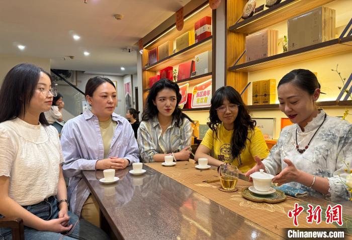 圖為青年在夜校體驗品茗。陳宗淇 攝