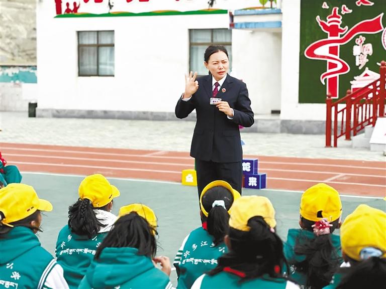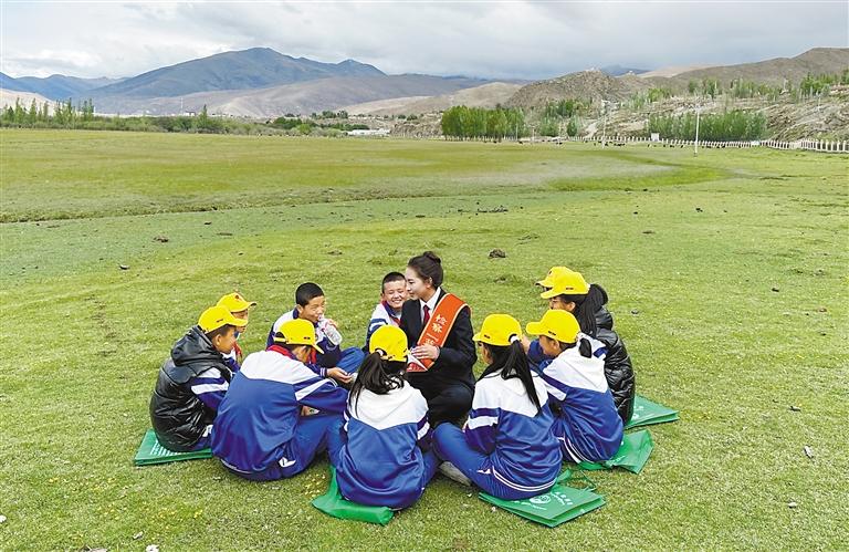 日前,曲松縣人民檢察院的檢察官在下落國家濕地公園舉行“法治小課堂”,為學生沉浸式講授濕地保護領域公益訴訟典型案件及政策法規(guī)。記者 丹增平措 攝