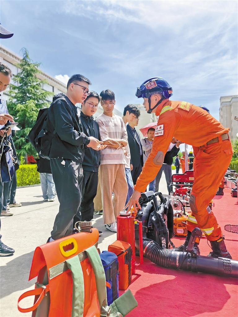 西藏大學學生聽取消防員講解消防救援設(shè)備的使用。通訊員 毛娜 攝