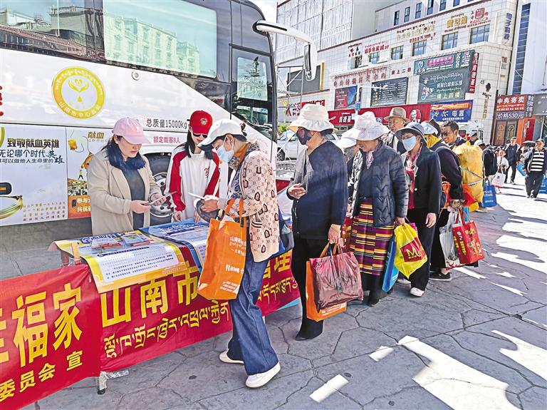 圖為宣講員向過(guò)往群眾發(fā)放宣傳冊(cè)。記者 巴桑旺姆 攝