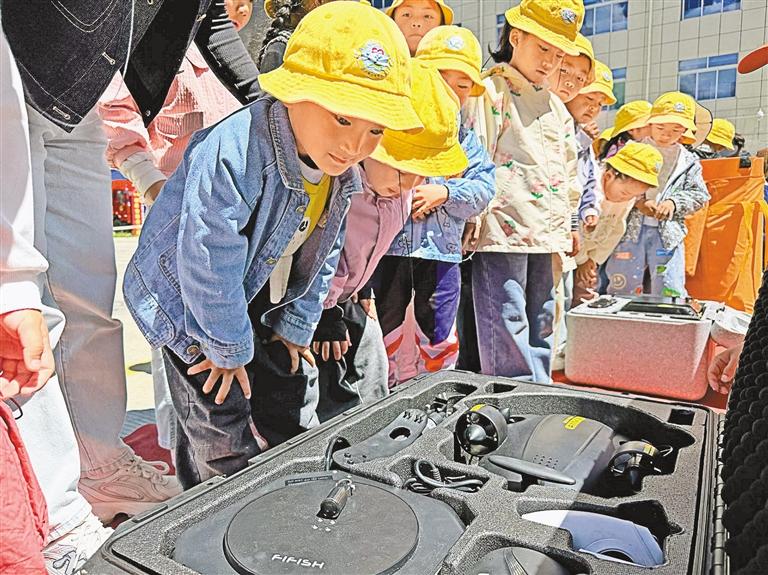 山南市第三實驗幼兒園師生參觀器材裝備。
