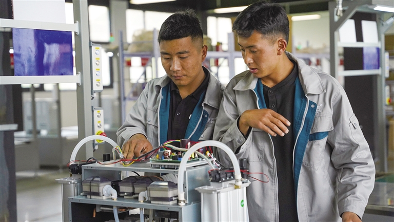 西藏清匠電器科技有限公司執(zhí)行董事劉炎林介紹,公司自2019年落地山南市乃東區(qū)以來,除了吸納本地大學(xué)生就業(yè)外,還堅(jiān)持為當(dāng)?shù)厝罕姶罱ā凹议T口”的就業(yè)平臺,截至目前,已經(jīng)帶動當(dāng)?shù)?00余人就業(yè)。