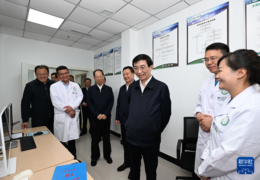 中共中央政治局常委、全國政協(xié)主席王滬寧到拉薩、山南就對口援藏等工作開展情況進(jìn)行調(diào)研。這是8月27日,王滬寧在山南市人民醫(yī)院調(diào)研。新華社記者 申宏 攝
