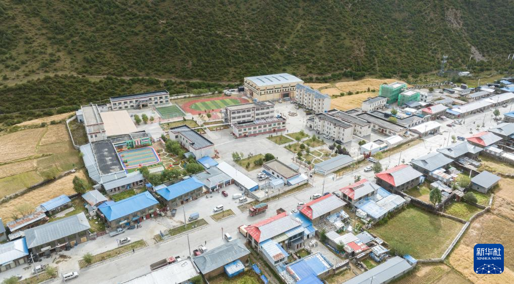 這是無(wú)人機(jī)拍攝的林芝市工布江達(dá)縣娘蒲鄉(xiāng)中心小學(xué)全貌(無(wú)人機(jī)照片,9月4日攝)。新華社記者 晉美多吉 攝