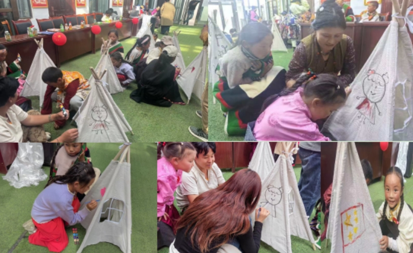 活動期間,孩子與家長一起拿畫筆將心中對祖國大家庭的熱愛和對美好生活五彩斑斕的想象繪制到小帳篷上,繪出專屬于自己獨一無二的多彩世界。