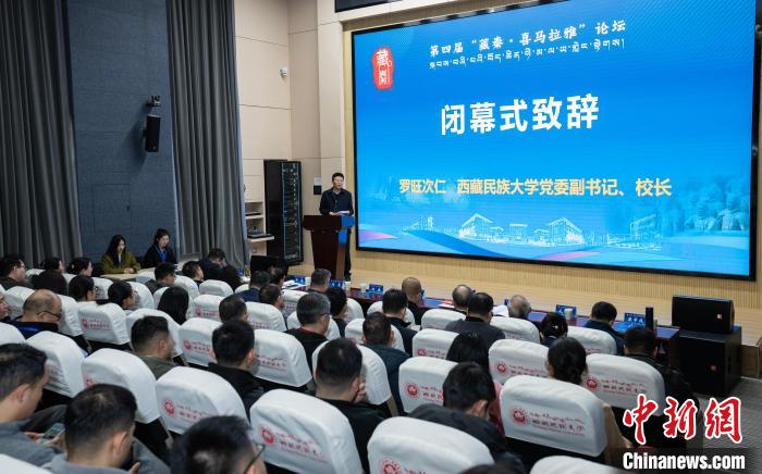 西藏民族大學黨委副書記、校長羅旺次仁在第四屆“藏秦·喜馬拉雅”論壇閉幕式上發(fā)表致辭?!≈鬓k方供圖