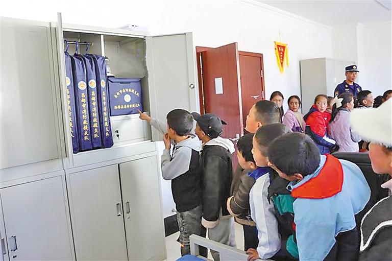 圖為學(xué)生在消防救援大隊內(nèi)參觀。記者 貢秋曲措 攝