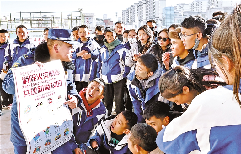 圖為那曲市消防救援支隊(duì)宣講員為師生講解消防安全知識。記者 王敏 通訊員 蔣貴忠 攝