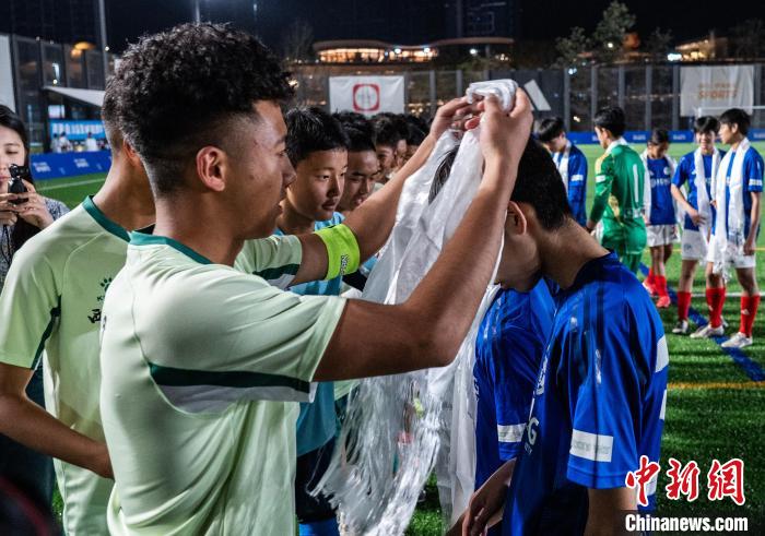 18日晚的香港西沙GO PARK球場,一場“跨越山?!钡淖闱虮荣愓诖碎g舉行,西藏青少年組成雪域雛鷹隊(duì)與香港東方體育會足球隊(duì)U16隊(duì)在綠茵場上以球會友。