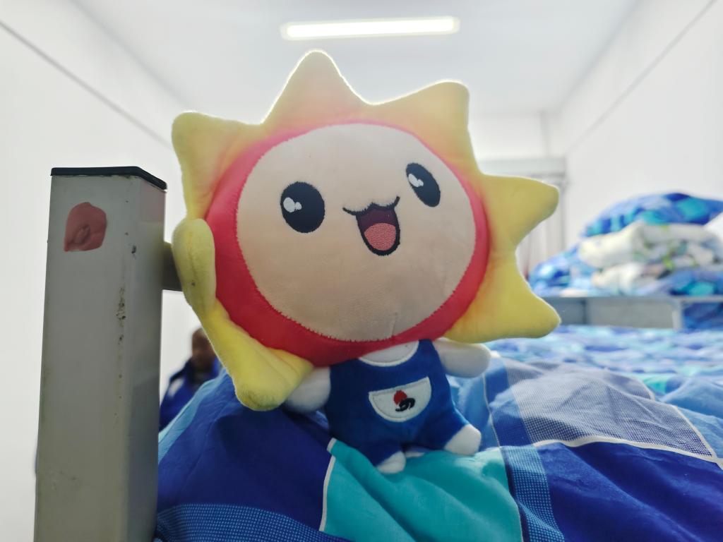 學生宿舍床鋪上擺放的“太陽娃娃”毛絨玩具。新華社記者 李西銓 攝