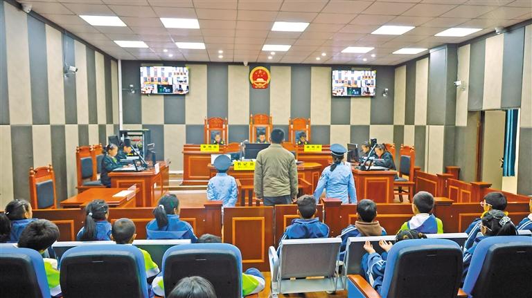 圖為結(jié)巴鄉(xiāng)小學(xué)的學(xué)生模擬法庭庭審現(xiàn)場。記者 武沛濤 攝