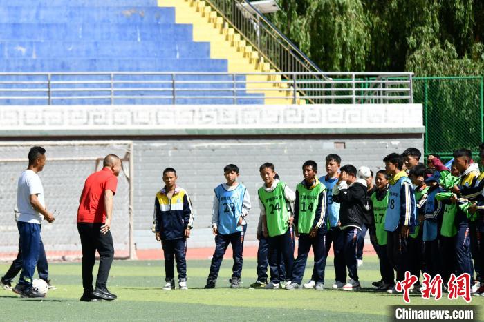 圖為在昌都市察雅縣中學(xué),重慶市第二十九中學(xué)校教師黃華(左二)向?qū)W生們教授足球技巧。昭信教育研究院 供圖
