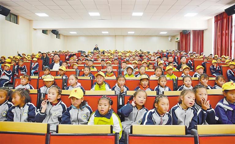 為學生認真聆聽報告。記者 格桑倫珠 攝。