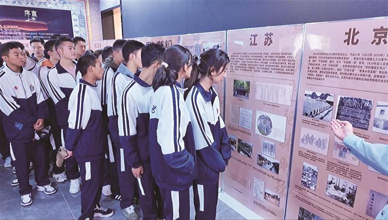學(xué)生觀看禁毒先驅(qū)林則徐生平史績(jī)?nèi)珖?guó)聯(lián)展展板。文/圖 記者 張雪芳