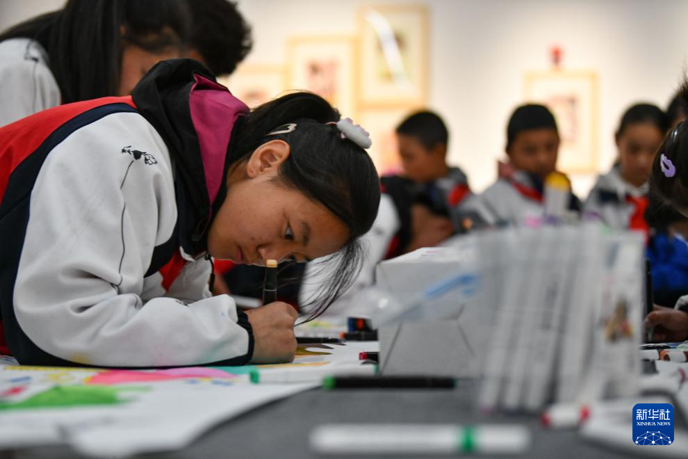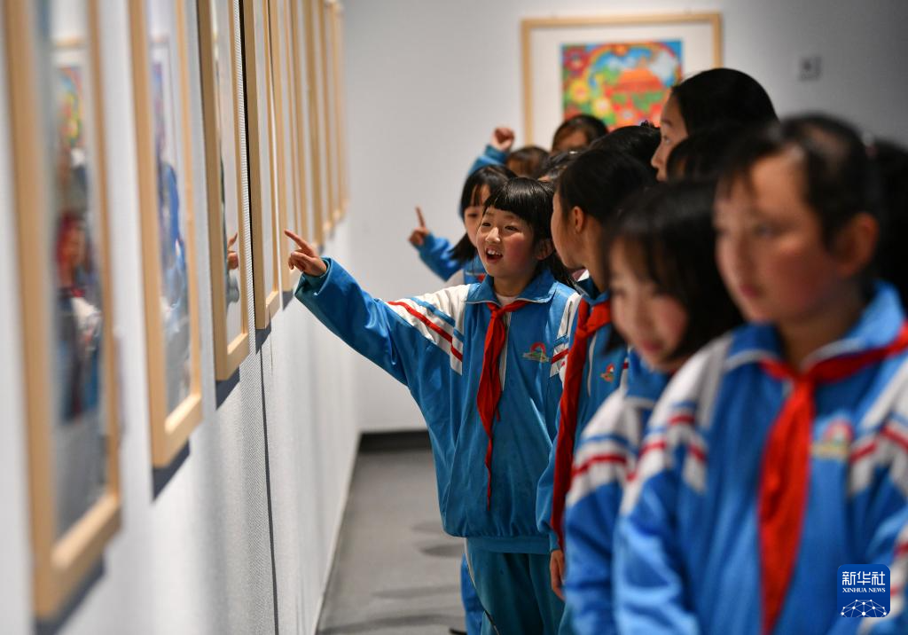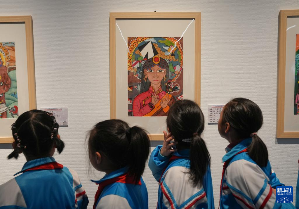 4月19日,拉薩市的小學(xué)生在參觀畫(huà)展。新華社記者 晉美多吉 攝