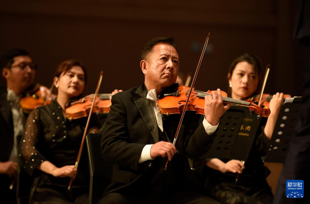 5月8日,《格?;▋合蜿?yáng)開》音樂(lè)會(huì)在西藏大劇院演出。新華社記者 晉美多吉 攝