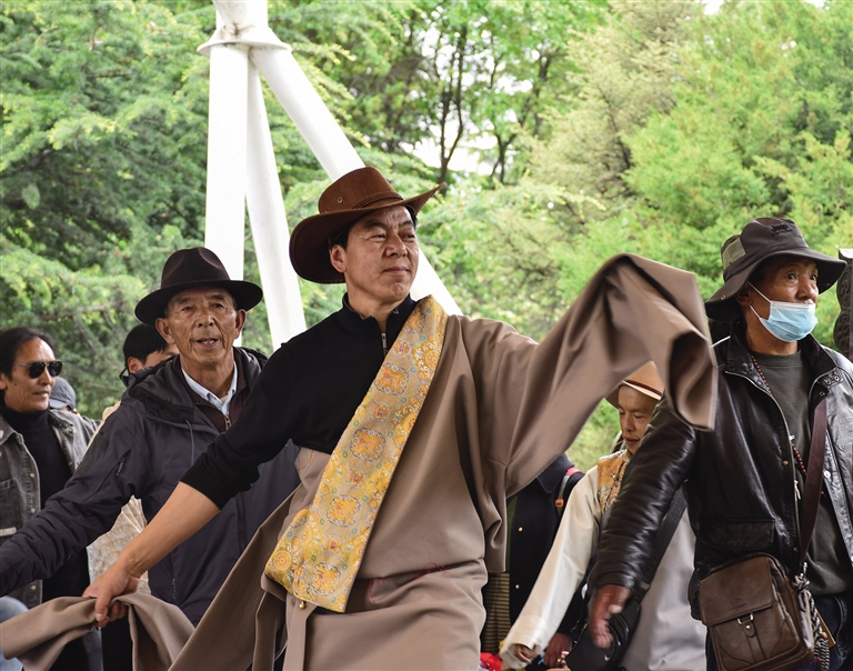 “能在杭州絲綢城街頭看到我們那曲的‘果卓’,一股自豪感從心里油然而生。”在浙江杭州讀研的旦增松繞說(shuō),鍋莊舞已然成為大家了解西藏優(yōu)秀傳統(tǒng)文化的一個(gè)途徑,也因其親民的舞蹈形式深受大家的喜愛(ài)。圍成一圈跳上一段鍋莊,沒(méi)過(guò)多久,人與人的距離便近了起來(lái)。