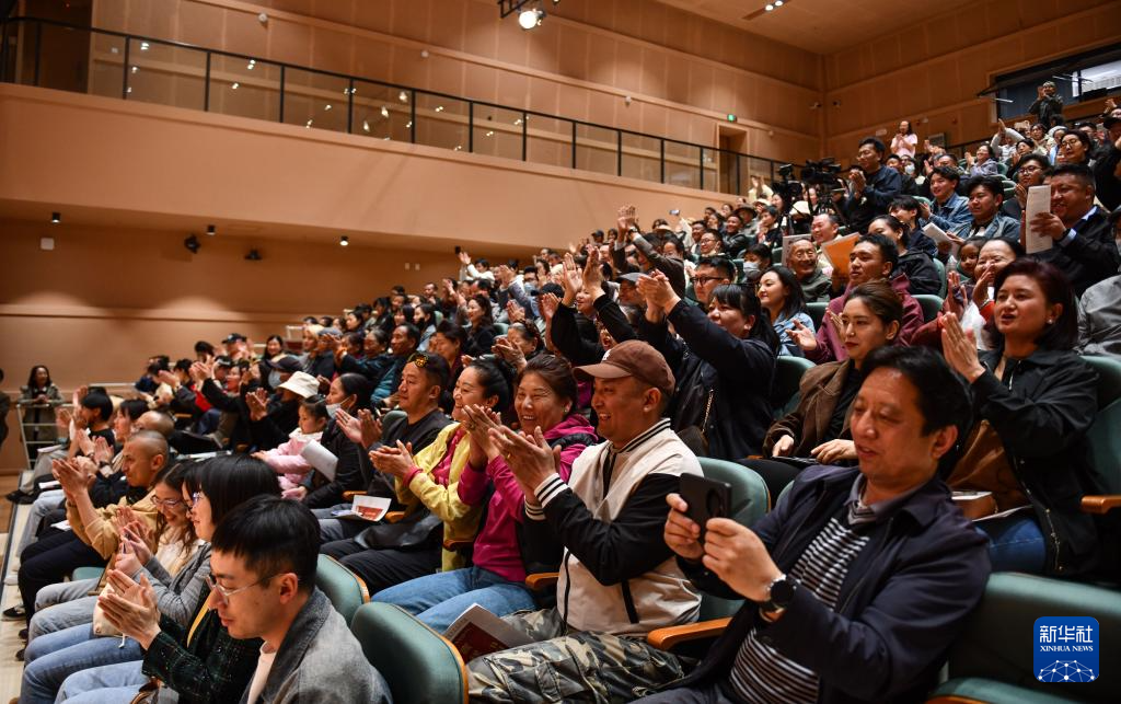 5月20日,西藏傳統(tǒng)民族音樂會(huì)《吉祥妙音》演出結(jié)束后,觀眾為演員們精彩的演出鼓掌喝彩。新華社記者 晉美多吉 攝