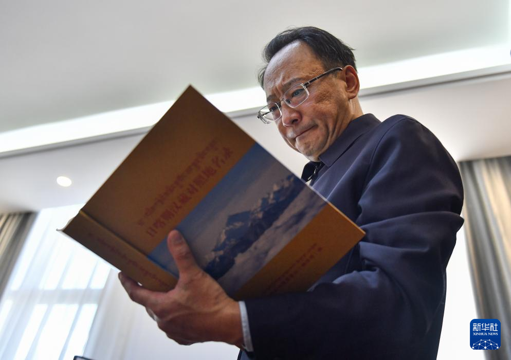 5月30日,尼瑪扎西在翻閱藏文工具書。新華社記者 晉美多吉 攝