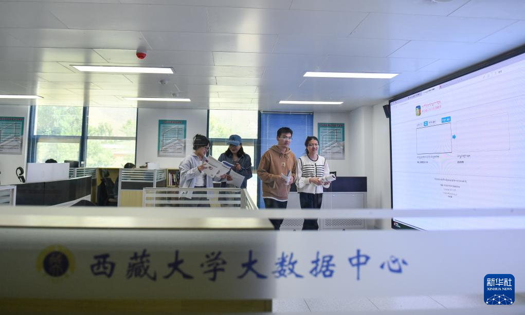 5月30日,尼瑪扎西的學(xué)生在西藏大學(xué)大數(shù)據(jù)中心結(jié)束翻譯軟件測試。新華社記者 晉美多吉 攝