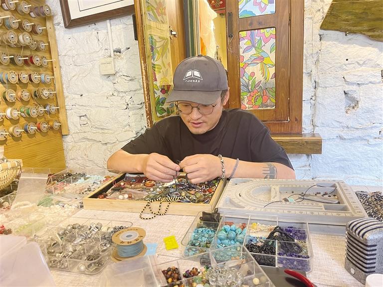 在拉薩堯西平康古建大院,院落里的回廊、房間都被賦予了新的生命。漫步其間,咖啡店的醇香氣息、藝術(shù)工作室的靈感碰撞……共同編織出一幅多元的生活畫卷。在這片充滿活力的古建院落中,成立于2021年的物喜手工工作室,以其個性化的手工銀飾和深厚的文化內(nèi)涵,吸引著越來越多年輕人的目光。
