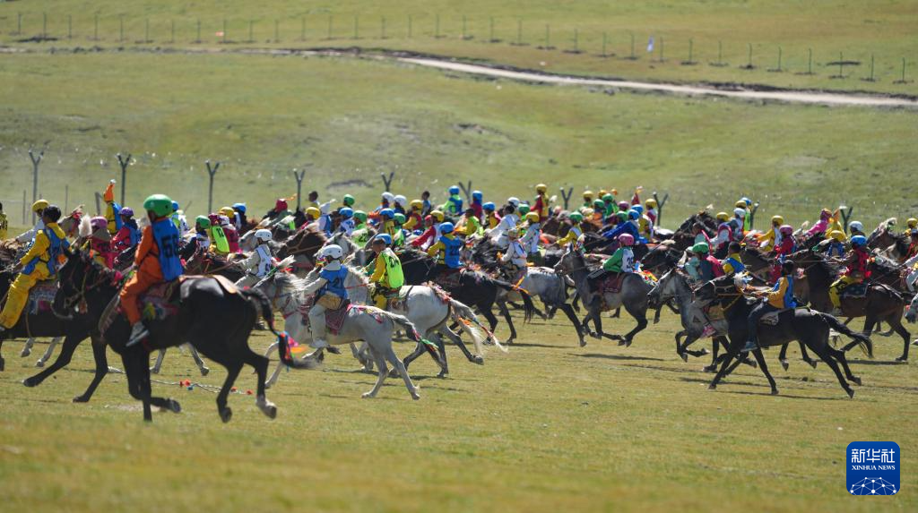 12日,10公里傳統(tǒng)大跑項目開賽,上百匹駿馬在草原上揚蹄疾奔,騎手多是十來歲的少年。15歲的普扎巴從6歲開始做騎手,曾騎著當(dāng)?shù)卦S多名馬到各地參加比賽,拿過多次冠軍?!拔蚁嘈胚@次也能拿第一名?!?0日,他在馬背上對記者說。