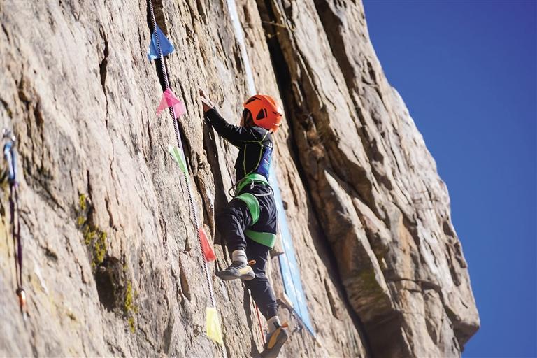 攀巖運(yùn)動(dòng)作為一項(xiàng)集力量、技巧、勇氣和智慧于一體的新興體育項(xiàng)目,被稱為“巖壁上的芭蕾”。比賽現(xiàn)場,運(yùn)動(dòng)員們迎難而上,靈活運(yùn)用各類攀巖技巧,在巖壁上完成騰挪、跳躍等一系列精彩動(dòng)作。