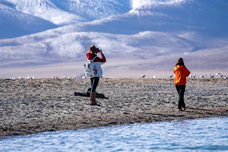 5月19日,“雪域古城·圣地拉薩”文化旅游節(jié)之“納木措開湖日”活動在納木措湖邊開展。納木措湖畔微風輕拂,湛藍的湖水與澄澈的藍天相映成趣。褪去冰甲的納木措湖面波光粼粼,棕頭鷗展翅掠過如鏡的湖面,白色牦牛馱著吉祥的哈達靜立岸邊,宛如一幅天然的山水畫卷。