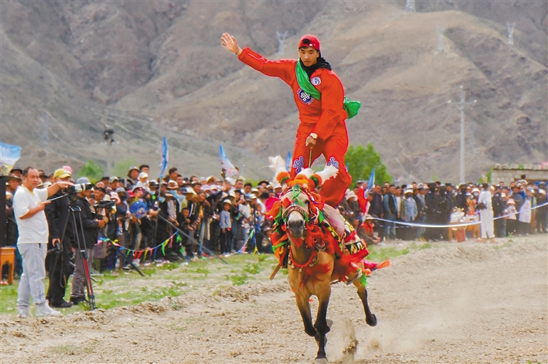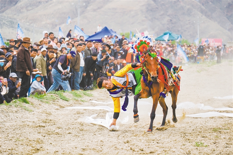 賽馬項目展示了非遺馬具、200米馬術比賽、短途沖刺賽、趣味挑戰(zhàn)賽等。騎手們緊握韁繩,揮舞著馬鞭,馬匹如離弦之箭飛馳而出,每一個高難度動作,都讓觀眾心跳加速、熱血沸騰。