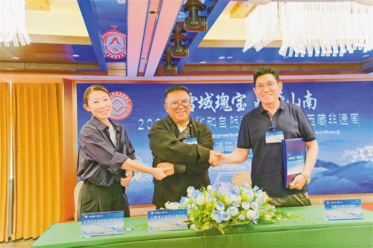 在全區(qū)非遺招商引資及項目簽約會上,4家企業(yè)負責人分別介紹公司發(fā)展歷程、市場前景、合作意向、未來計劃等情況。乃東區(qū)人民政府、乃東區(qū)文化和旅游局、西藏卓番林文化有限公司、北京依文服飾股份有限公司等一同簽訂了項目合作協(xié)議。