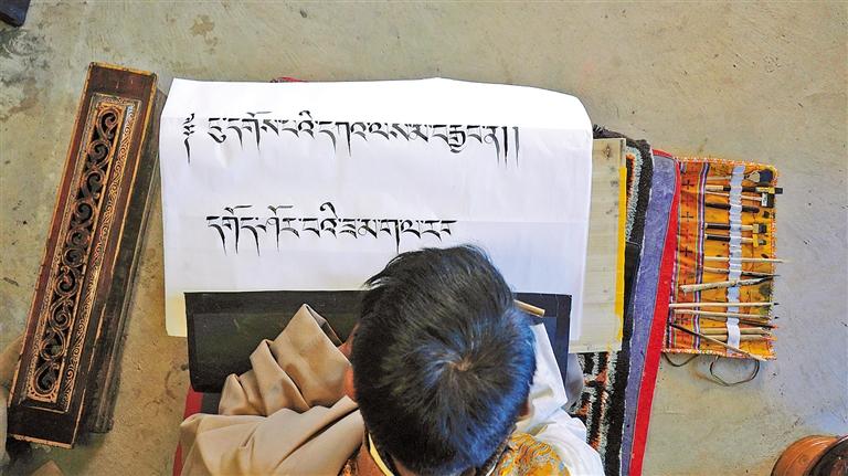 索朗多布杰介紹說,2008年,藏文書法經(jīng)國務(wù)院批準(zhǔn)列入第二批國家級非物質(zhì)文化遺產(chǎn)名錄;2014年,尼赤派書法被列入第四批國家級非物質(zhì)文化遺產(chǎn)名錄擴(kuò)展項(xiàng)目。